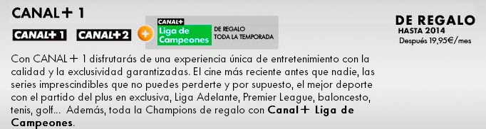 Jazzbox con Canal+1 ofrece gratis Canal+1, Canal+2 hasta 2014 y Canal+ Liga toda la temporada. En el caso de elegir Canal+ Liga será gratis hasta 2014 y La Liga de Campeones hasta final de temporada.